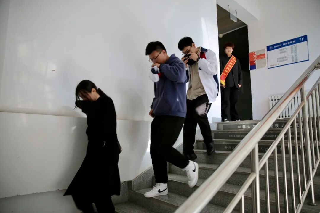 讲座结束后,参与本次活动的学生在raybet入口进行火灾疏散逃生演练,随着教学楼连续响起警报,学校消防疏散演练拉开帷幕,各位学生捂住口鼻,弯着腰,沿着学校指定的逃生路线,从教学楼的各出口迅速撤离至指定地点。